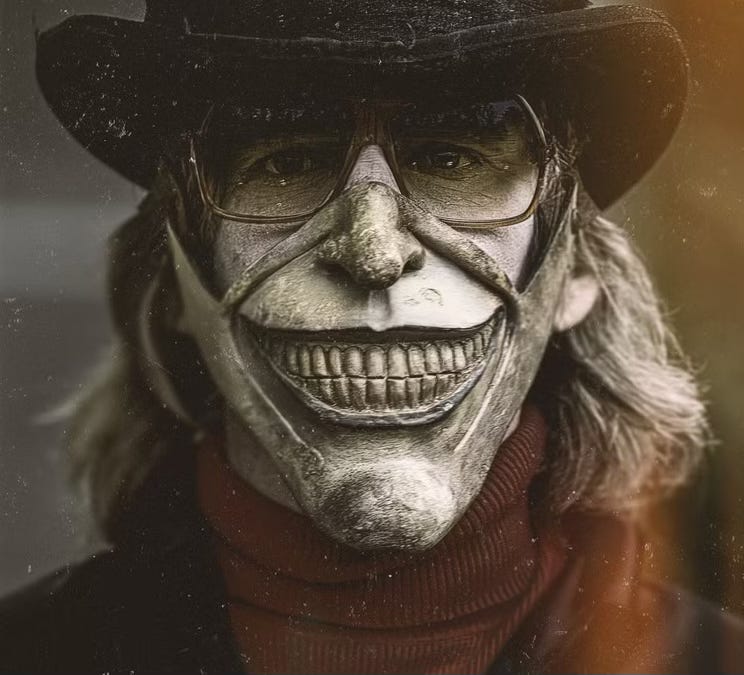And yet, on the rare occasions we’re allowed a close-up of the Grabber’s mask, those eyes are the glistening blue of a terrified child.