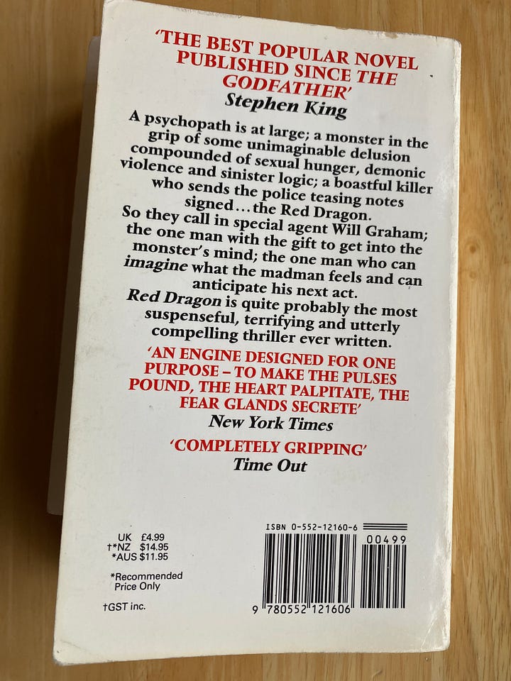 Red Dragon remains copyright of author Thomas Harris. Passages are quoted here under terms of fair use for the purposes of criticism.